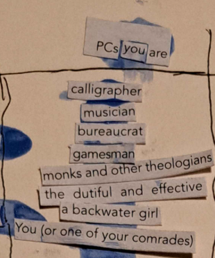 After spending the Winter in the Ember, I decided to hack apart Winter's Embrace (an adventure for L5R) and find the elements that could fit into a more classic rpg. This is a fragment of an adventure, stuck together with blue nail paint and willpower.